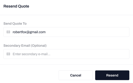 You can resend the Quote at anytime to the same designated Approver or additional team members by clicking on the 'Send' icon. To send the Quote to a new contact or contacts, enter their email address(s) into the Secondary Email field. These recipients do NOT need to Users in your Fuel Me account.