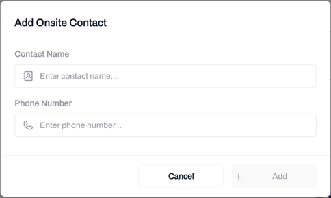 The Onsite Contact is the person in your organization who is responsible for receiving the fuel delivery and coordinating with the fuel vendor upon their arrival. To ensure a smooth delivery, we recommend making sure the Onsite Contact information is kept up to date. If necessary, you can add multiple Onsite Contacts by clicking on the + Add Onsite Contact and adding in their contact details. Providing multiple Onsite Contacts is a good option if your team works in shifts or if one person is not always available.